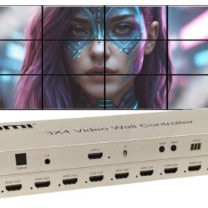 Com o Controlador de Vídeo Wall 2×3 Hdmi- HDVW2X3 é possível criar uma “parede” de Monitores ou TVs e distribui um pedaço da imagem em cada um dos blocos de vídeo, suportando até 6 displays de exibição . São excelentes para uso em igrejas, feiras, clubes, festas, karaokê e outras aplicações. Resolução em 4k oferecendo imagens de vídeo nítidas e de alta resolução