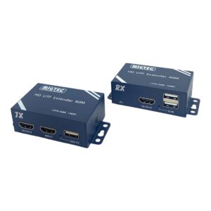 O extensor HDMI 60 metros com função KVM, possibilita realizar uma extensão de um sinal HDMI junto do sinal USB em até 60 metros via cabo de rede CAT5/CAT6.