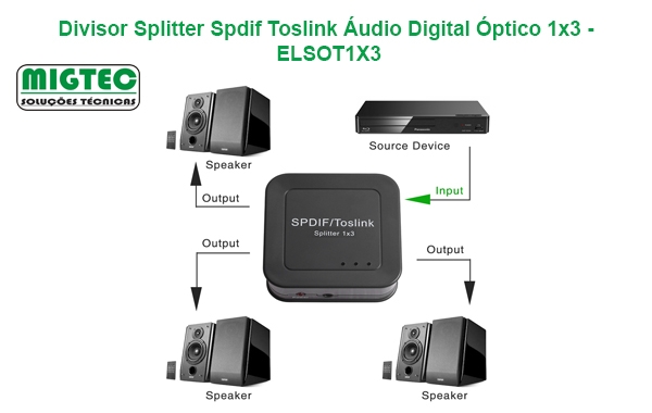Divisor Splitter Spdif Toslink Áudio Digital Óptico 1×3 – ELSOT1X3