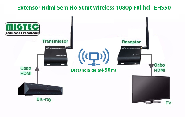 Extensor Hdmi Sem Fio 50mt Wireless 1080p Fullhd – EHS